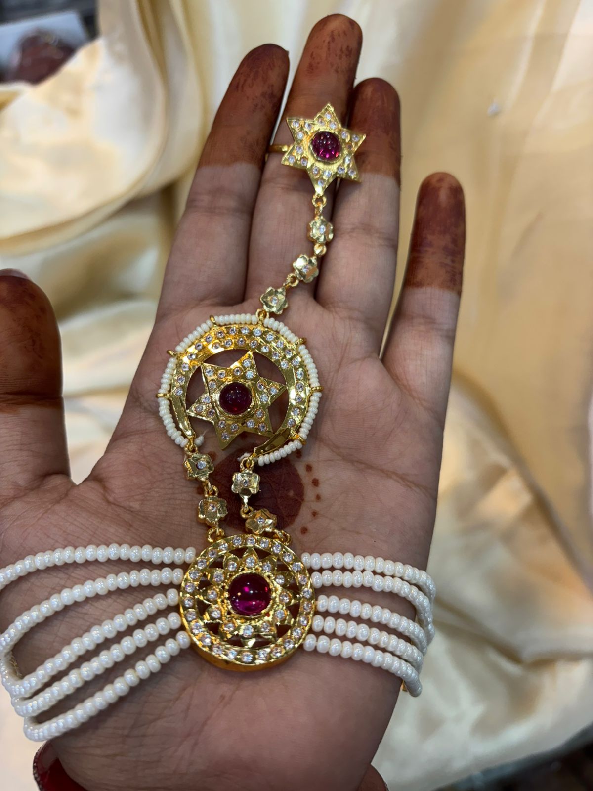 Each piece in our collection tells a story of tradition, artistry, and pride. From the rich hues of poshaks to the intricate sparkle of aad, borla, and bajubandh, our designs reflect the royal essence of Rajputana with a touch of contemporary charm.